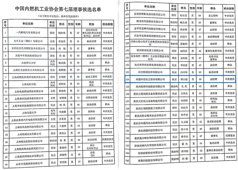 南通科星化工股份有限公司當選中國內(nèi)燃機工業(yè)協(xié)會理事單位